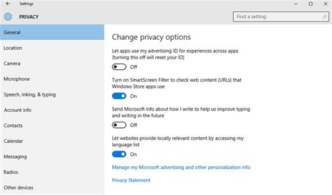 „Windows 10“ operacinėje sistemoje taip pat svarbu patikrinti kameros būseną privatumo nustatymuose. Juos pasieksite per „Pradžios“ meniu, pasirinkę „Nustatymai“ ir tada „Privatumas“. Jei interneto kamera yra išjungta, slankiklį, pranešantį apie tai, reikia perkelti į priešingą padėtį.
